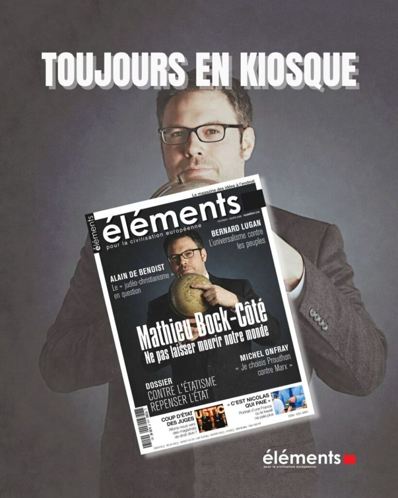 C’est le chroniqueur et essayiste conservateur québécois Mathieu Bock-Coté qui s’affiche sur la couverture du nouveau numéro du « magazine des idées pour la civilisation européenne » à l’occasion d’un grand portrait réalisé par François Bousquet.