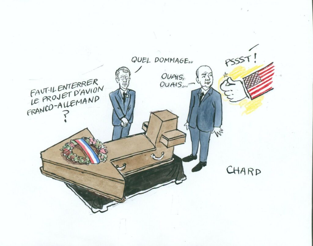 Tensions franco-allemandes: le dessin de Chard Articles Economie International26 février 2026 la Rédaction Aucun commentaire Le Système de combat aérien du futur (Scaf), projet d’avion européen de combat de sixième génération, connait d’importantes turbulences. L’Allemagne envisage même de développer l’avion du futur sans l’industriel français Dassault Aviation. Abonnez vous à notre lettre d’information Partager c'est militerTwitterFacebookLinkedInTelegramWhatsApp ÉtiquettesAllemagneaviationFranceindstrie